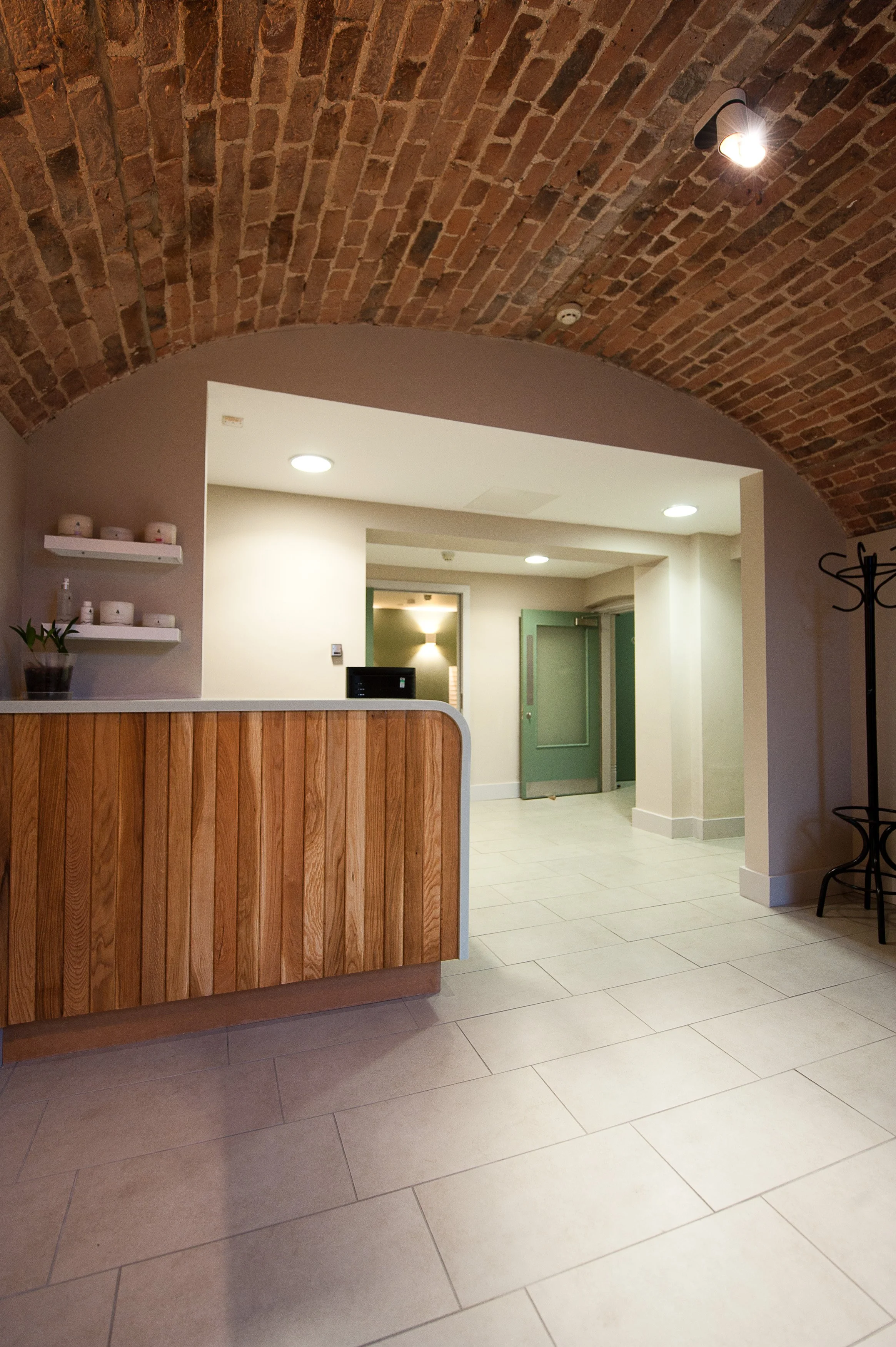 Non-original partitions subdividing large spaces were removed in order to reveal some of the original features of the building. Despite minimal structural alterations, the space was transformed through opening up a brick vaulted ceiling previously used as toilets to provide a new light-filled entrance. Circulation was also enhanced to lead to a variety of treatment rooms and activity spaces acoustically separated from the remainder of the building.