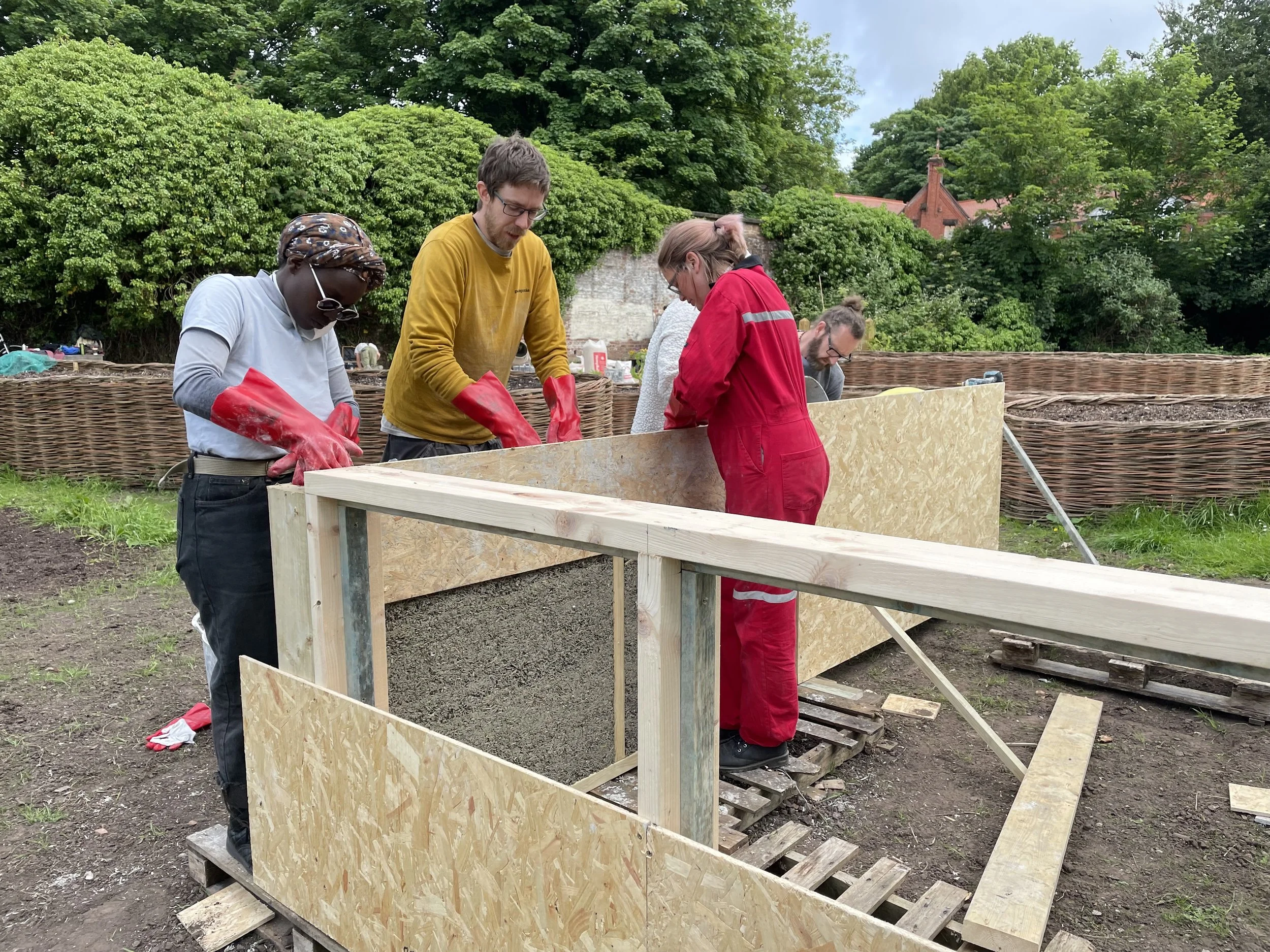 Phase 2 of the project has seen the conversion of a dilapidated Changing Rooms building into a low-carbon health and wellbeing therapy centre. Recognising the lack of regional construction skills in natural retrofit materials, we have worked in conjunction with Growing Sudley to learn and share knowledge, setting up a number of training initiatives where local community members could gain hands-on practical experience.