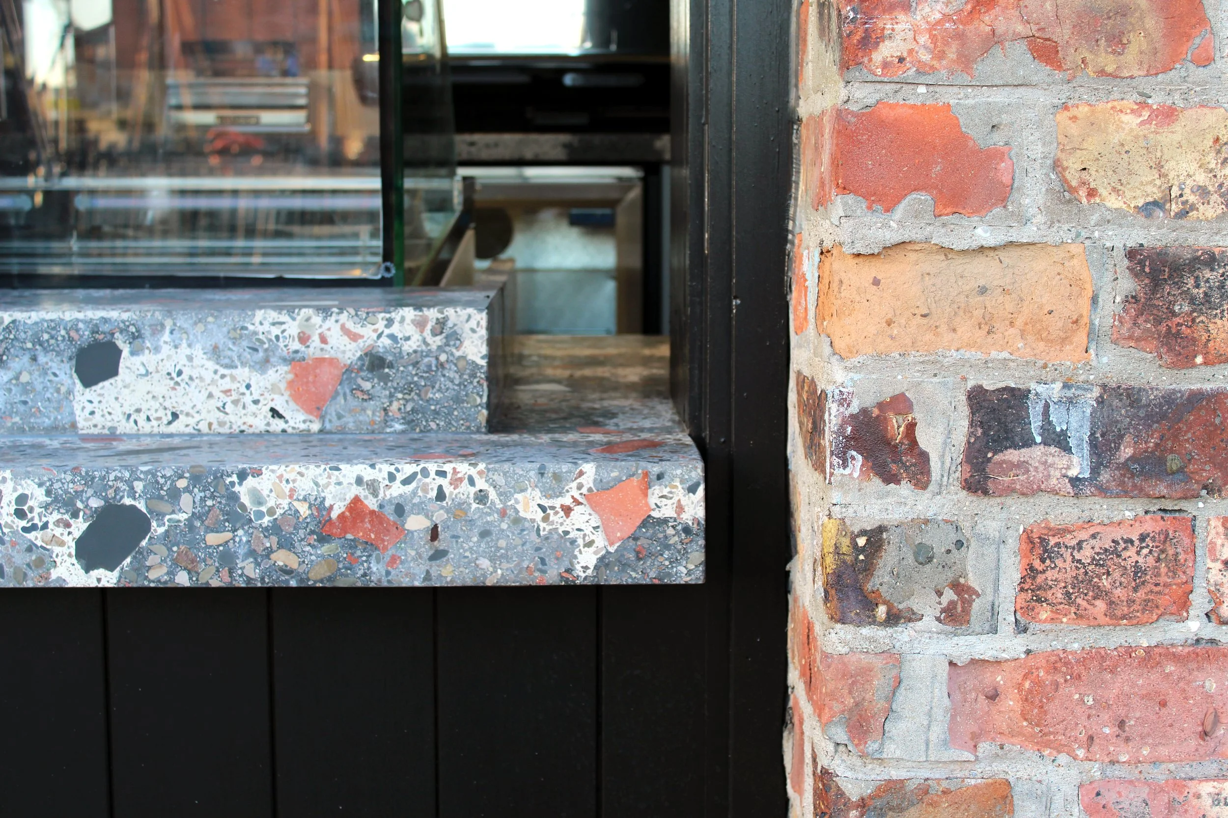 Our initial studies demonstrated that this would be difficult to deliver without causing harm to the character of the listed fabric due to the lack of servicing to the building. In exploring NML’s commercial requirements, we identified an underutilised corner of the adjacent Victorian Pilotage building (also within NML ownership), which, with its existing service connections and status as an undesignated heritage asset, felt more suited to a potential food and beverage outlet. Taking precedence from the conservation setting and stories of the waterfront, particularly in respect of materials and the sugar story, The Hartley Hatch’s sensitive refurbishment includes a new stained Accoya timber frame and opening ‘hatch’, set within the existing door opening. Brick waste from the minor structural works has been used to form the worktop counter (Granby Rock).