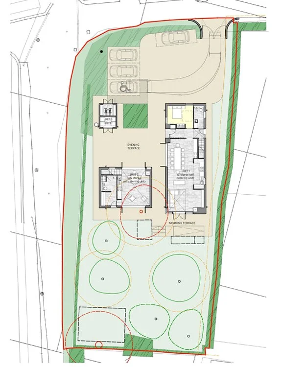 With no mains connections, the proposal is as self-sustaining as possible. The orientation and building arrangement capitalises not only on the views but allows for passive solar gain, optimal solar panel positioning and SUDS drainage.