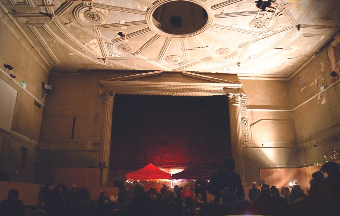 The initial reaction of the visitors justifies why re-use of such spaces is so important. The original ceiling and proscenium arch are still visible, a chorus of ‘wows’ and Christmas songs filled the space. Discussion from visitors has confirmed how keen people are to be a part of its future use.